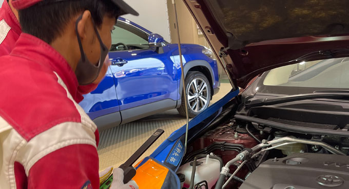 技能実習生で培った経験で、エンジンオイル、トランスミッションオイル、バッテリー、タイヤ交換です。